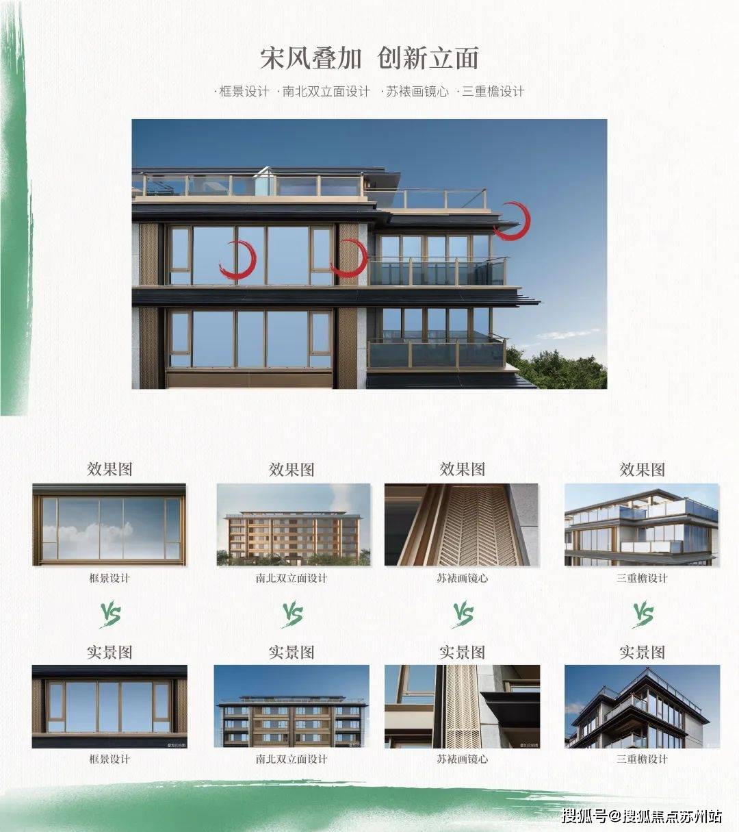 建筑细节上,采用了框景天地、天空之镜、南北双立面、三重檐设计、苏裱画镜心等元素,既保留了东方韵味,又融入了现代美学。