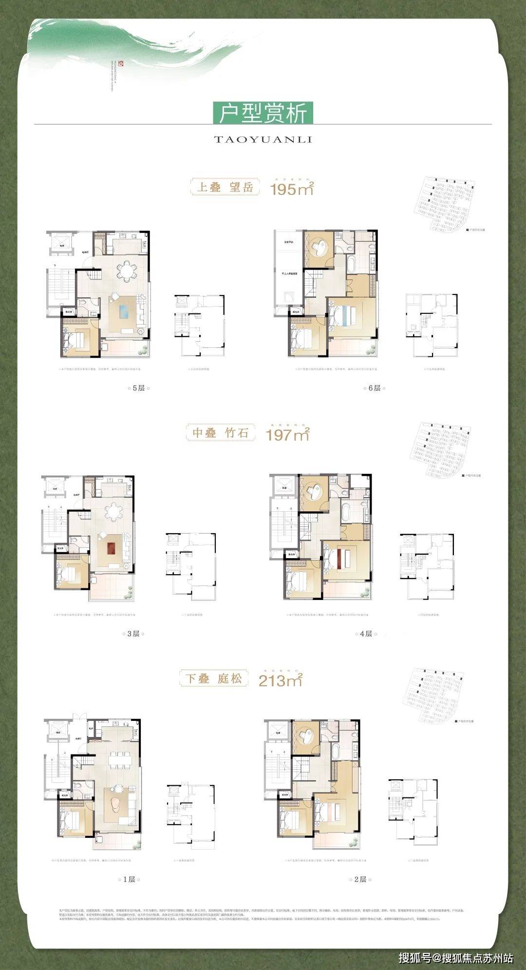 项目在继承传统中式美学的基础上,融入现代审美眼光,将宋文化美学与现代叠墅完美融合,打造了建筑面积约195-213㎡的宋风叠加产品。
