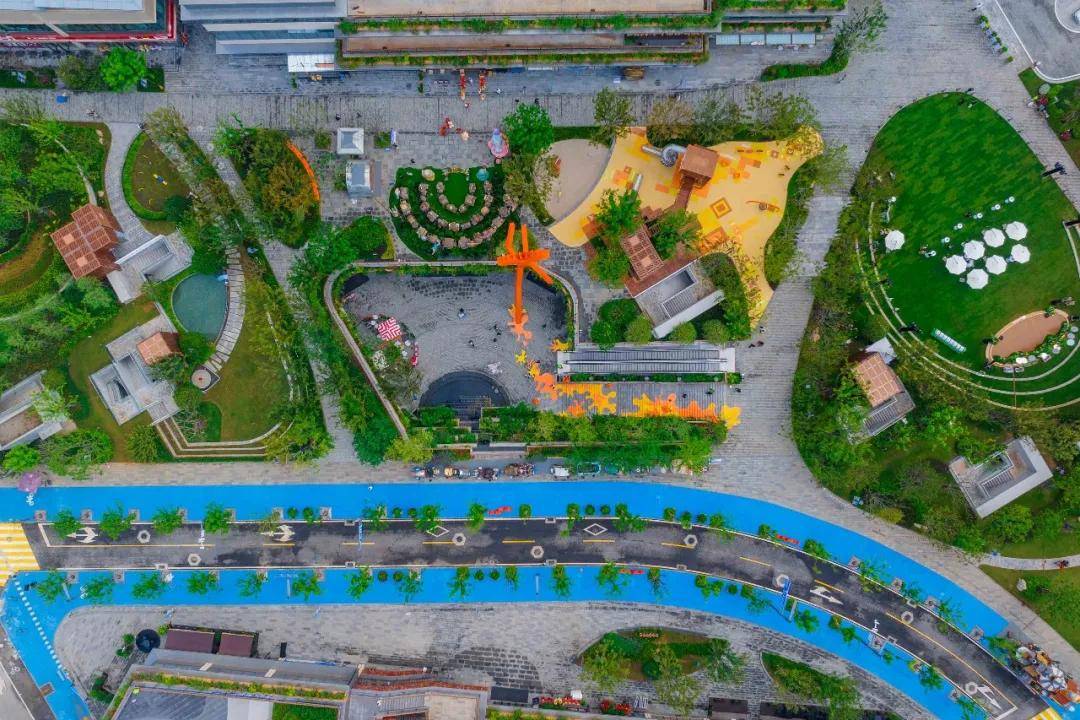 秉持自然共生理念的KIC PARK,开创性地将1.3万㎡绿地公园、5.1万㎡商业街区、7万㎡甲级写字楼融为一体。