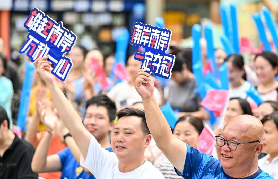 在授旗仪式环节,游泳将南岸队队旗交到主教练刘劲彪手中。大旗在刘劲彪手中挥舞,全场爆发热烈掌声和欢呼声。大家的信任与支持,是我们前行的非常大动力。刘劲彪认为,南岸队经过一段时间的积极训练,已逐渐适应未来的比赛节奏。今天,我们整装待发,把‘南岸’二字的荣光扛在肩上,全力以赴打出风格、赛出水平,力争好成绩!