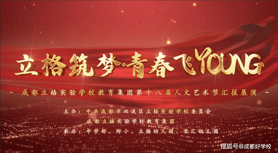 本届艺术节汇报展演是由成都市双流区立格实验学校委员会、成都立格实验学校教育集团主办,中学部、附小、立格幼儿园和荣汇幼儿园精心承办。在集团各学部、各处室部门通力协作下,历时三个月精心筹备,并历经班组初赛、校级决赛、集团展演三个阶段层层打磨后,一台精彩绝伦的艺术盛典呈现在线上线下观众的眼前。