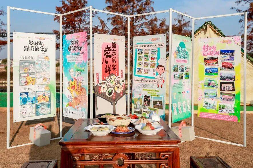 作为活动亮点之一,现场举办的“獬豸农文创市集”汇聚了闵行兄弟街镇和浦江的优质农文旅资源。市集内,香气扑鼻的“村咖”、本邦风味的“村厨”、国家级非遗“沪谚”和区级非遗“老八样”的非遗互动,还有浦江地产大米、番茄等展销摊位,以及獬豸主题文创产品,特别是浦江特色的“海陆空”农文旅路线,与“花田”系列的村BA、村碗、村跑、村晚、村厨、村播等“村字号”活动集锦展,吸引了众多游客的关注,共同构成一幅活色生香的乡村产业画卷。游客既可现场品尝购买,也可通过线上平台下单,实现了“赛事引流、市集变现”的产销高效对接,也为浦江镇“獬豸造物节”系列农文旅商体展活动掀起了迎新高潮。