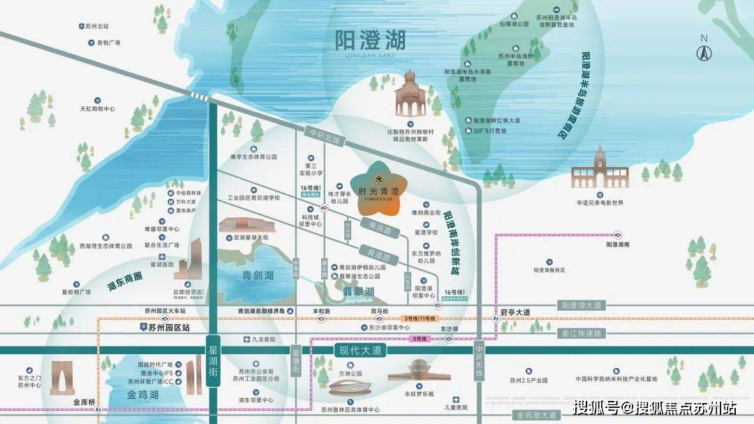 “阳澄湖、青剑湖、翡翠湖围合坐落,阳澄湖湖滨生态体育公园、翡翠湖生态公园等环伺。众多俱乐部资源丰富,聚合成年轻活力的社交秀场。”