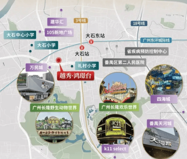 交通出行方面,项目更是做到了 “地铁 + 城际 + 主干道” 三位一体的立体交通网络,不管是通勤还是日常出行都极为便捷。首先看地铁,项目步行约 700 米就能到达地铁 3 号线大石站,这条线路堪称广州的 “黄金通勤线 站就能直达万博 CBD,6 站就能抵达珠江新城,对于在天河、海珠等核心区上班的年轻人来说,每天通勤时间能控制在 1 小时内,完全不用忍受长时间的拥挤奔波。更值得期待的是,规划中的地铁 26 号线群贤路站已经通过环评,未来开通后 5 站就能到客村,还能有效分流通勤压力,进一步提升出行效率。