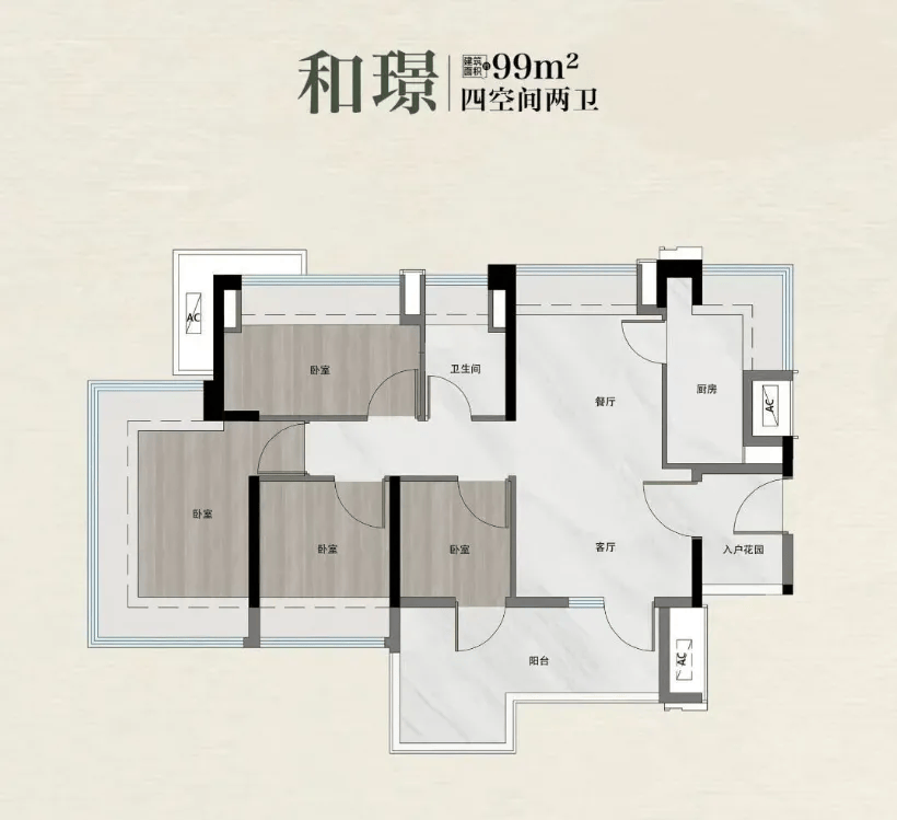 建面 99㎡四房两厅两卫,定价 287-300 万元,是项目的刚需爆款户型,深受购房者喜爱。户型为东南向,南北对流,通风采光极佳,而且采用 4+1 房的灵活设计,多出来的空间可以作为儿童房、书房或者兴趣室,完美适配三口之家的成长需求。随着孩子慢慢长大,家里需要更多的独立空间,这个户型完全能满足家庭不同阶段的需求,不用因为孩子长大而频繁换房,性价比超高。