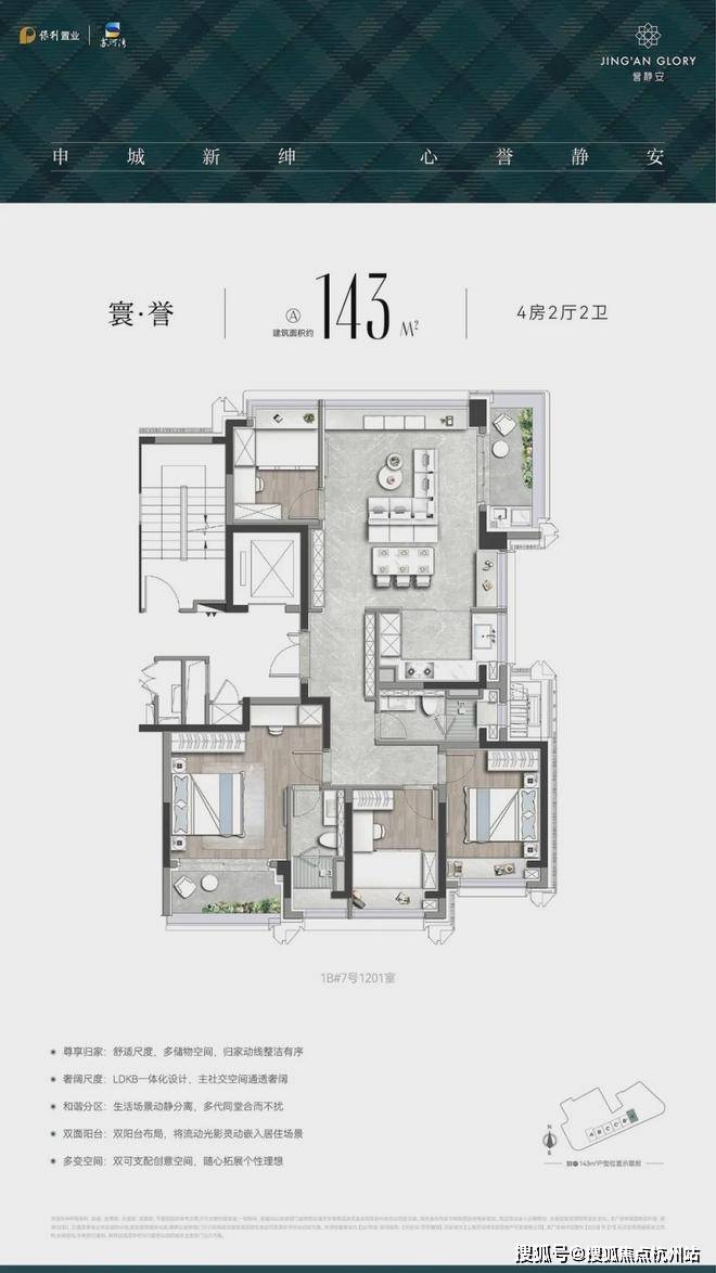 誉静安建面约143㎡户型,是2000万级买到内环内4房的仅有机会,一步到位终极改善,还在各个层面实现居住品质的跃迁,这样的房子买起来能不舒心吗?