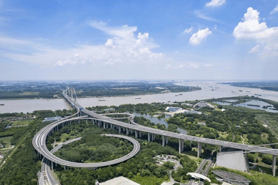 从润扬大桥盘旋而下,直通江岛世业,这里绿树成荫、阡陌相连,呈现出一派宜居宜业和美的江南田园风光。