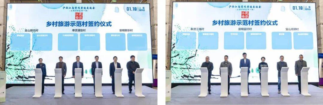 市文化和旅游局会同市规划资源局、市农业农村委从沪派江南乡村旅游示范村中精选出15个特色村落,通过实地踏勘、资源深耕、IP精研与业态策划,为示范村擘画了差异化文旅发展蓝图。会议现场金山枫泾镇新元村和景域集团、奉贤区庄行镇潘垫村和久事旅游集团、崇明区新村乡新乐村和春秋旅行社、奉贤区南桥镇江海村和芯萱农业、崇明区中兴镇富圩村和万禾农业、宝山区月罗镇月狮村和思尔腾集团完成签约。此次签约标志着项目从策划阶段正式迈向实施阶段,体现了政企同心、携手并肩的合作精神,以文旅为桥、以产业为脉,共促农文旅深度融合。