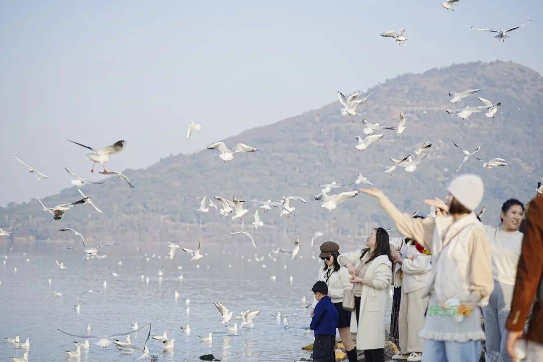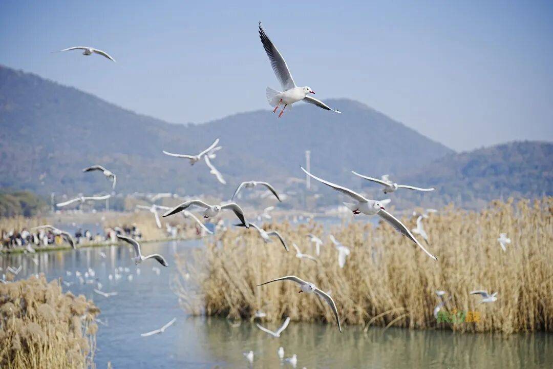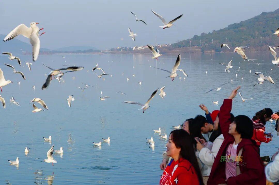 2、【鸥遇太湖】每年此时,西伯利亚的红嘴鸥如约而至。你可以亲手向空中抛食,看它们敏捷地掠取,用快门定格翅膀划过天际与湖光的瞬间。这是只属于冬日的、鲜活的生命交响诗。