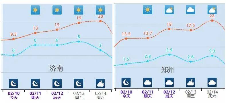 14日,20℃线也抵达河北南部、山东北部,为今年以来最北,从黄淮到江南都是温暖如春。像郑州22℃、济南20℃、合肥20℃、南京20℃、南昌21℃、杭州21℃,温暖程度仿佛快进到了一个月后,堪比4月初的水平。