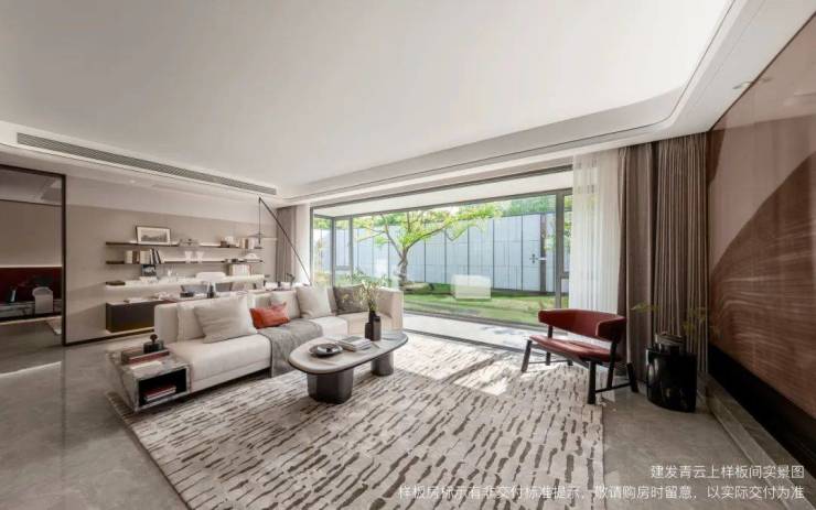 建发·青云上通过去符号化的设计,用黄金比例的建筑线条,构筑轻盈通透的全景采光视界。在园林上,秉承自然山水风度,借超越于山水画中物象之外的深层意韵,再造自然之境。